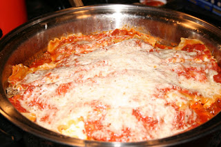 So what did we eat?  Lasagna.  Have you ever heard of making Lasanga in a Pan? I have not.